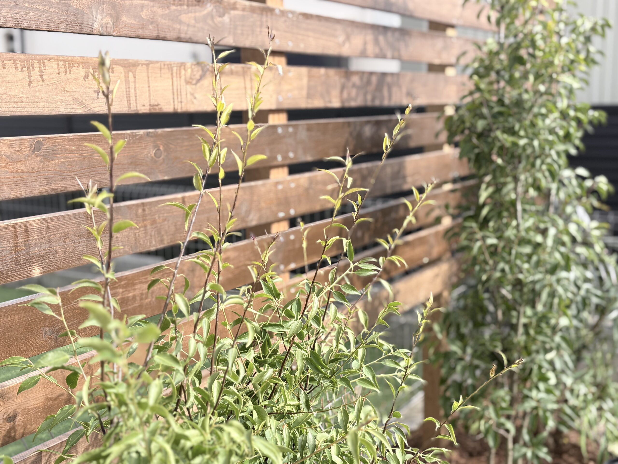 柔らかい枝葉はウッドフェンスと相性が非常に良いですよ^^
